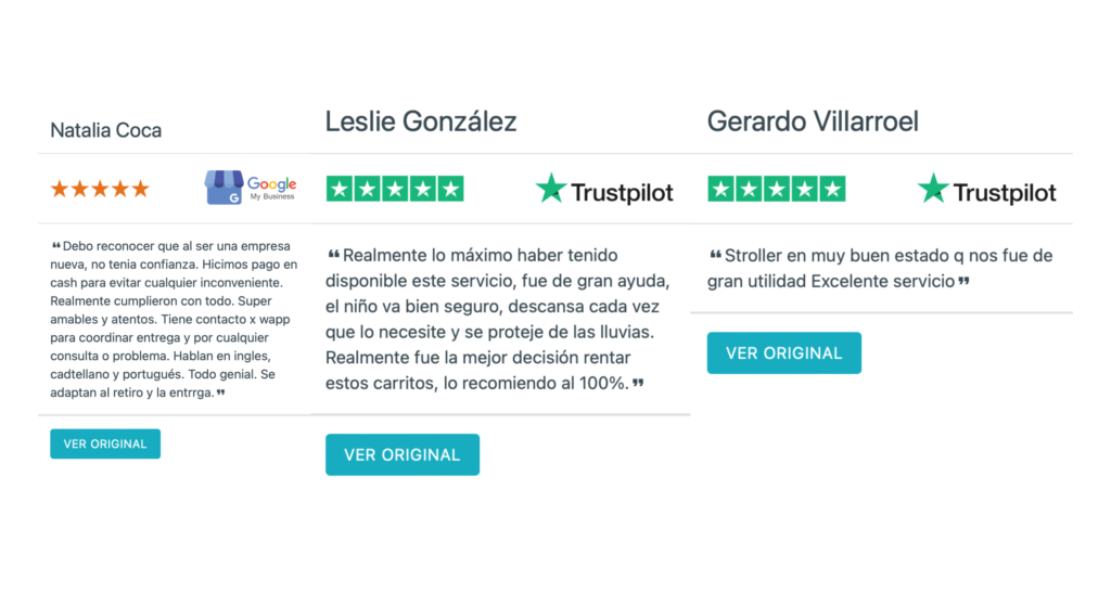 Strollercare es conocida por su servicio fiable y de alta calidad. Nos dedicamos a proporcionar cochecitos seguros, limpios y cómodos para que pueda disfrutar de su estancia en Orlando y sus alrededores sin preocuparse por el transporte adecuado para su pequeño. Los números hablan por sí mismos, basta echar un vistazo a algunos de los comentarios que hemos recibido:
